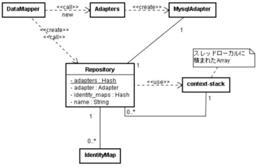 やはり,最初はここから. 0.9.x に比べて,格段にモジュール化が進み,非常にシンプルになっている. 最初の方 ひたすら require して,必要なコードを読み込んでいる.所々 TODO があるので,また変わるんだろうなぁ... DataMapper.root module DataMap…